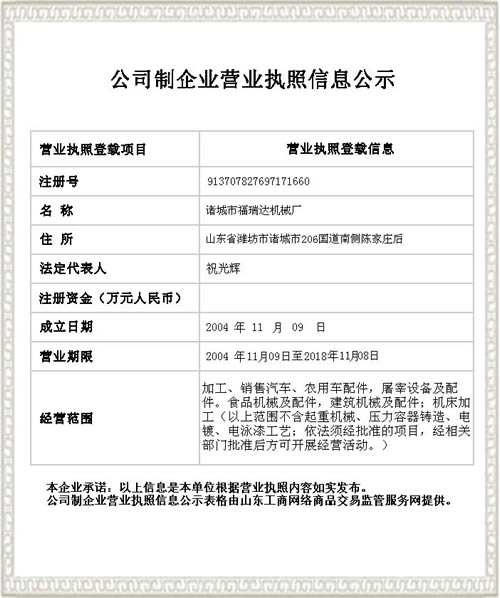 諸城市福瑞達(dá)機(jī)械有限公司